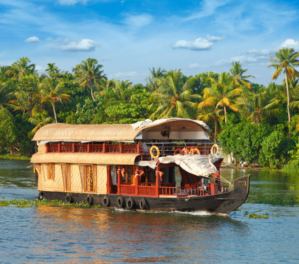 Today you will proceed to Alleppey, also known as the “Venice of the East”. Check in to a traditional Kerala houseboat and cruise along the tranquil backwaters. Witness the charm of village life, lush paddy fields, and swaying coconut palms as you relax on board. Savor authentic Kerala cuisine prepared by the houseboat chef and spend a magical night floating on the waters.